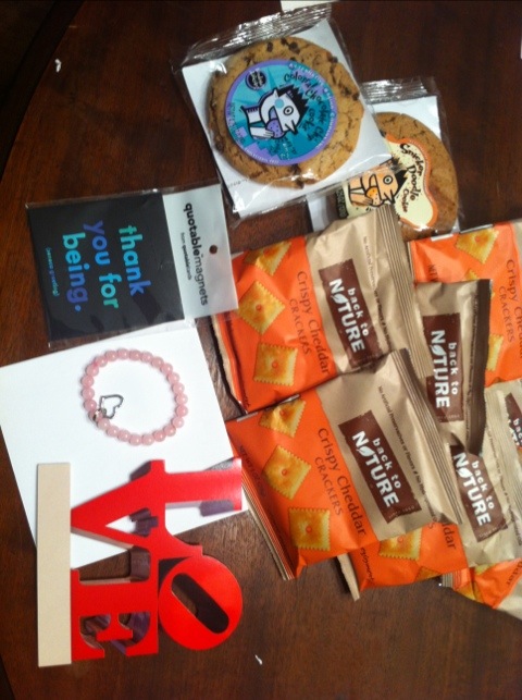 Here’s a pictures of this year’s Valentine gift I put together and mailed to my mom from me and Joey. Don’t tell her you know what she’s getting! 🙂