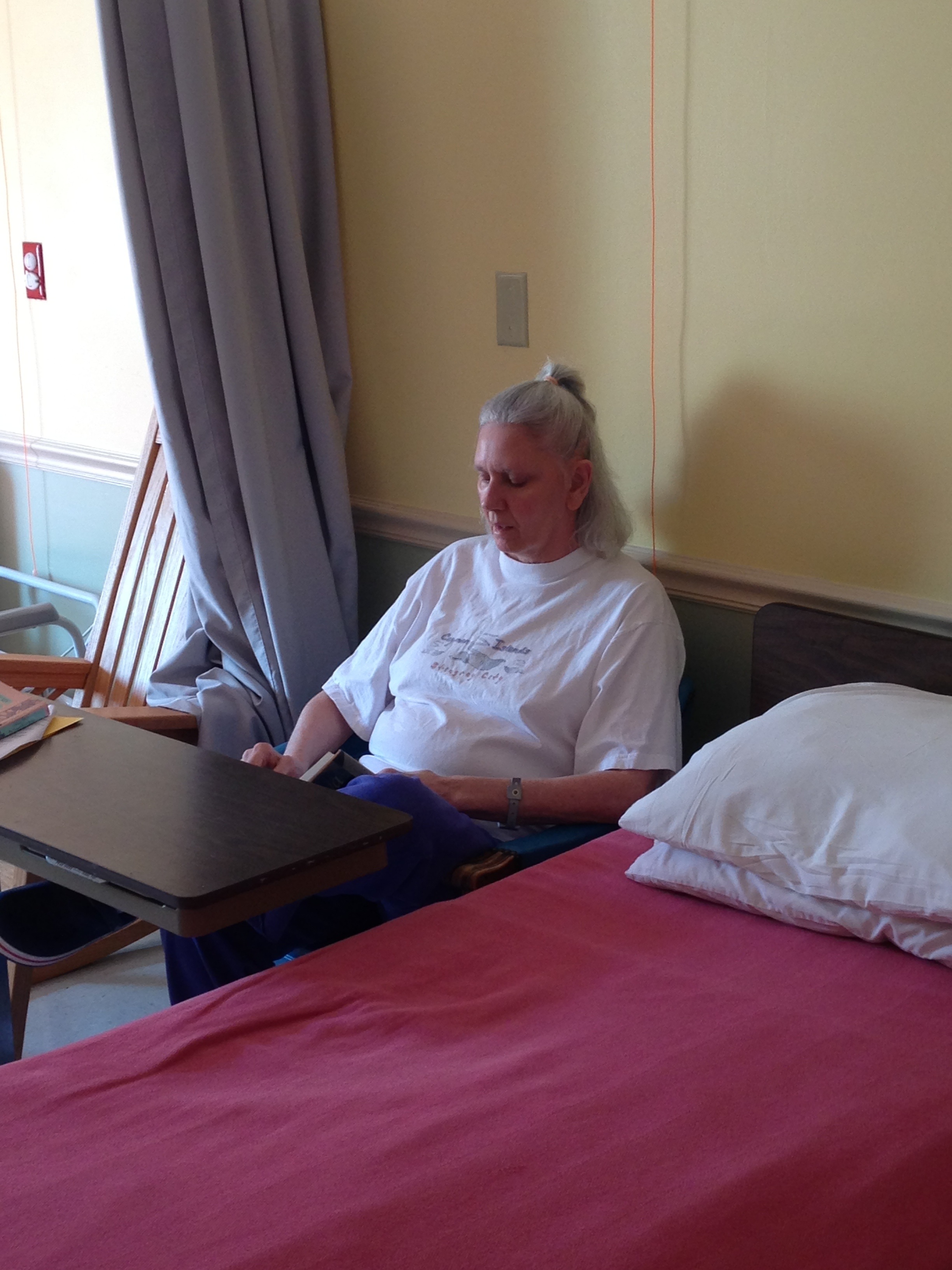 I think we will add a second momsitter for two additional days per week, so someone will be there five days per week for three hours each day. Three hours of time where someone is singularly focused on spending time with mom and doing things she loves and will stimulate her.